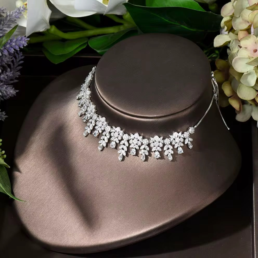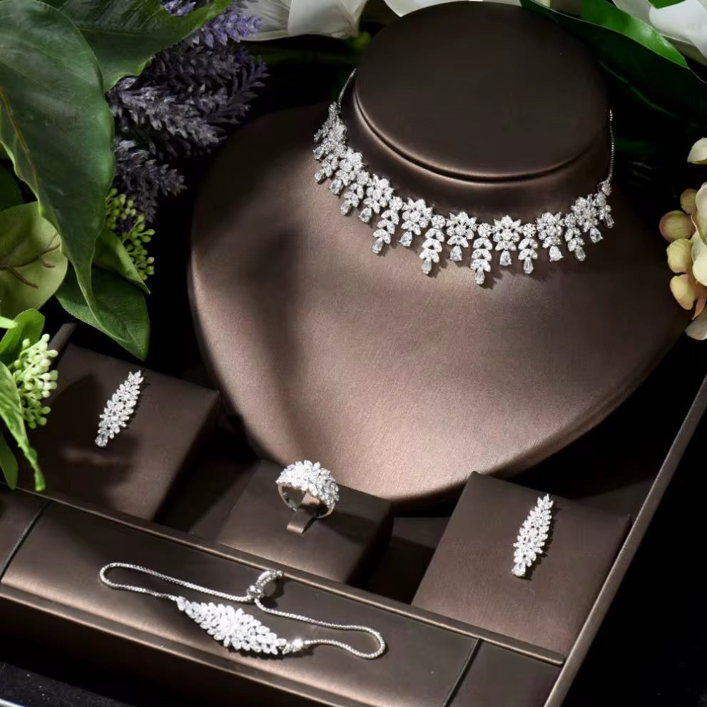 طقم زركون فاخر مطلي بالذهب الأبيض - إشراقة وأناقة تدومان
