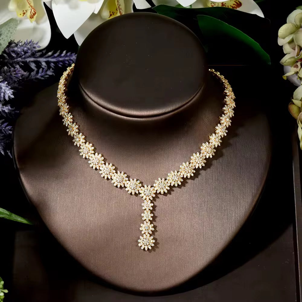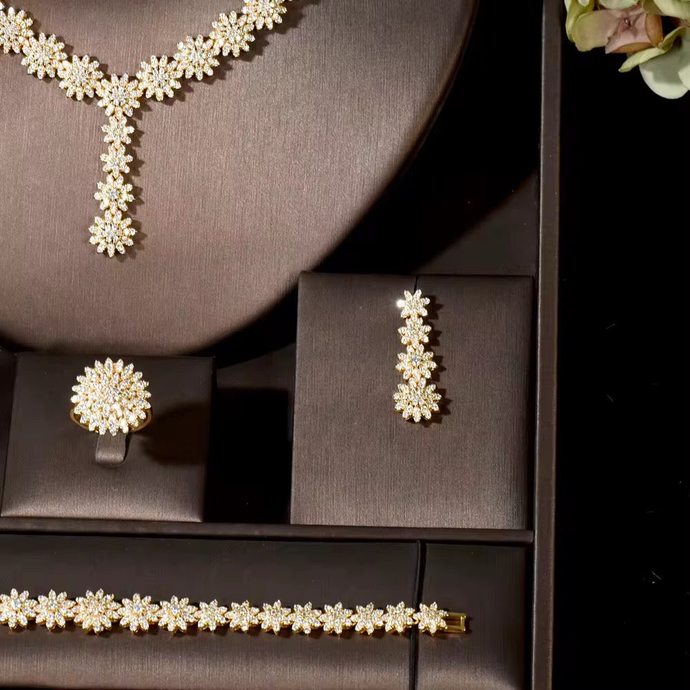 طقم زركون فاخر مطلي بالذهب – بريق يشبه الألماس