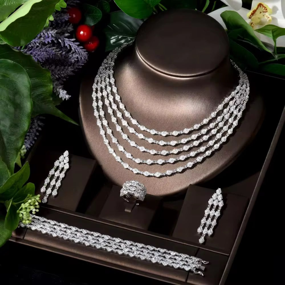 تألقي وأضيفي لمسة من الفخامة إلى إطلالتك مع طقم مجوهرات الزركون المذهل هذا، المصمم خصيصاً للنساء اللواتي يعشقن الأناقة والفخامة الخالدة.