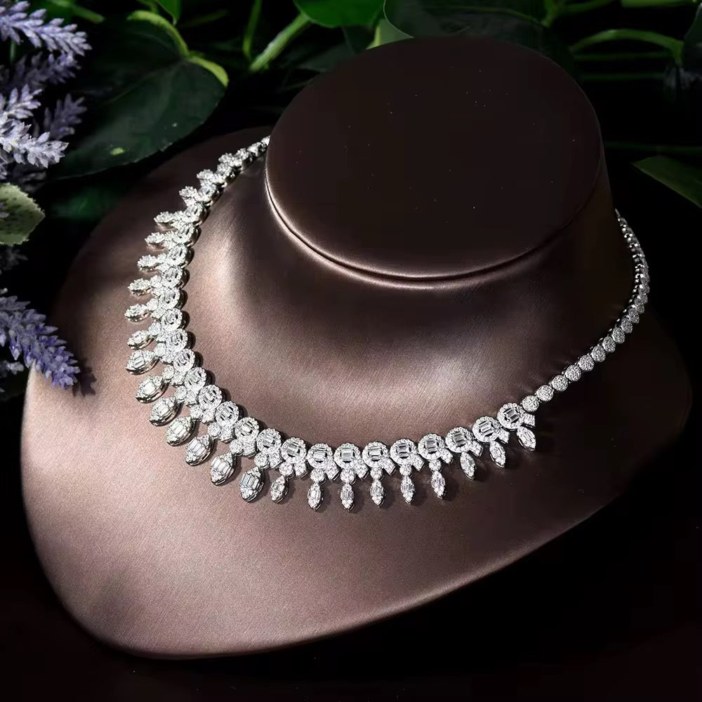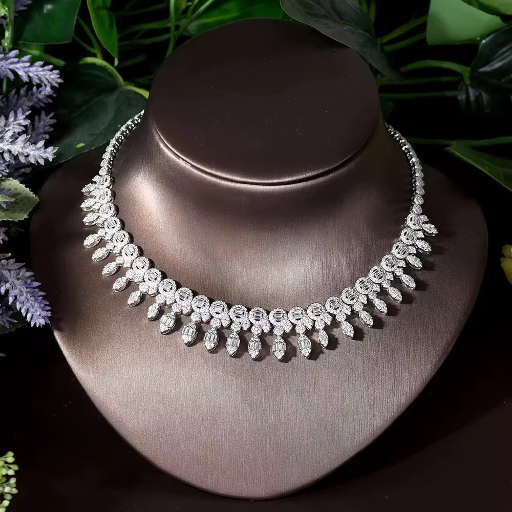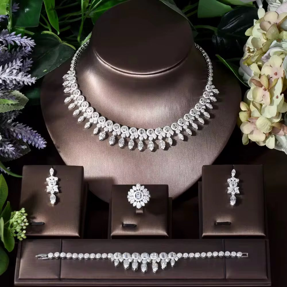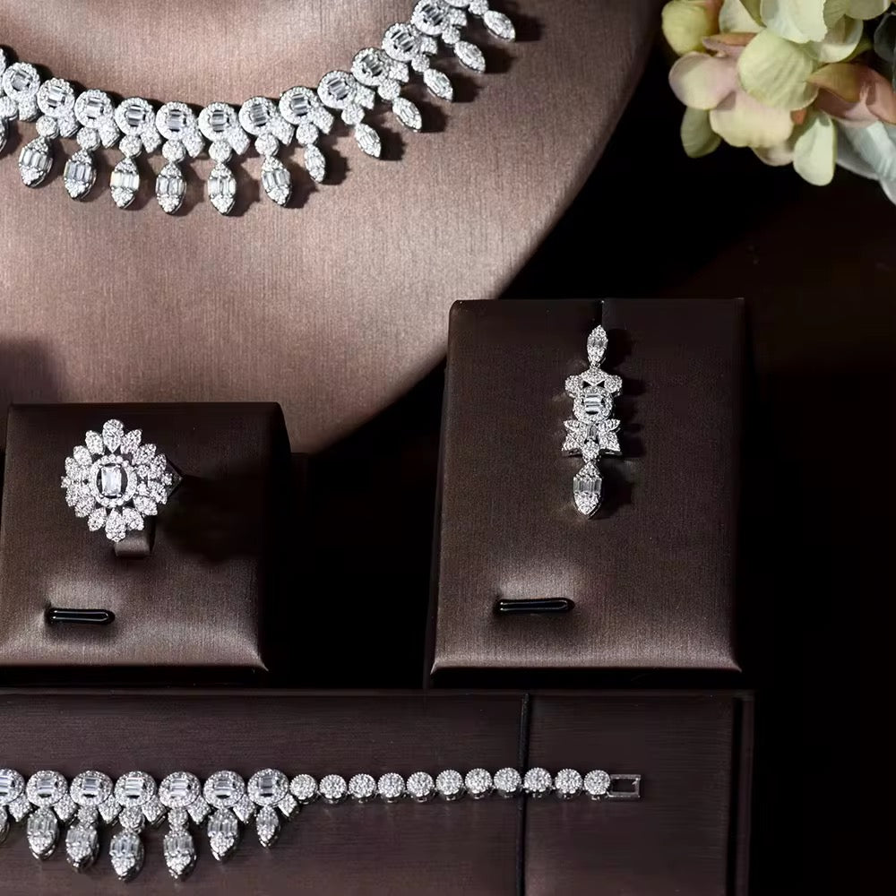 طقم زركون فاخر مطلي بالذهب الأبيض