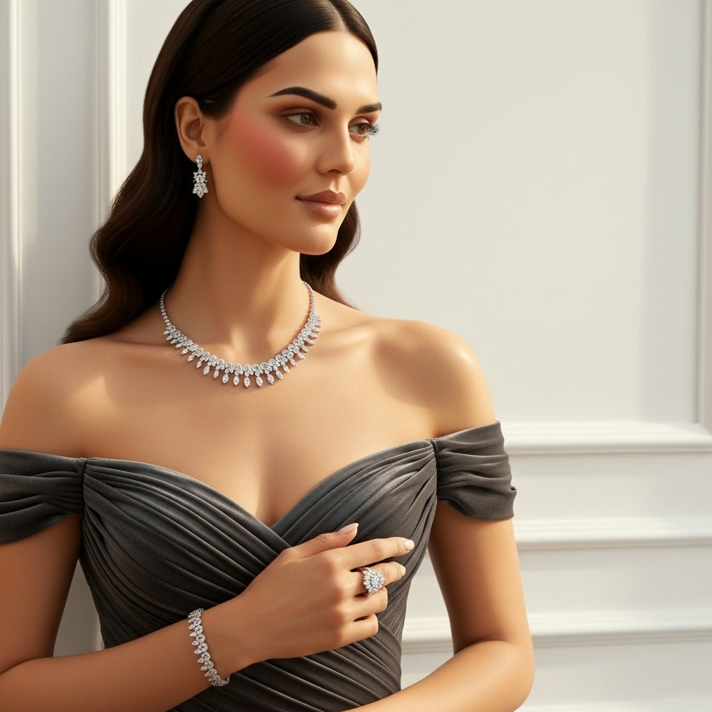 أحجار زركون عالية النقاء مختارة بعناية لتقدم بريقاً يحاكي الألماس الحقيقي ويضفي لمسة فخمة على كل إطلالة.