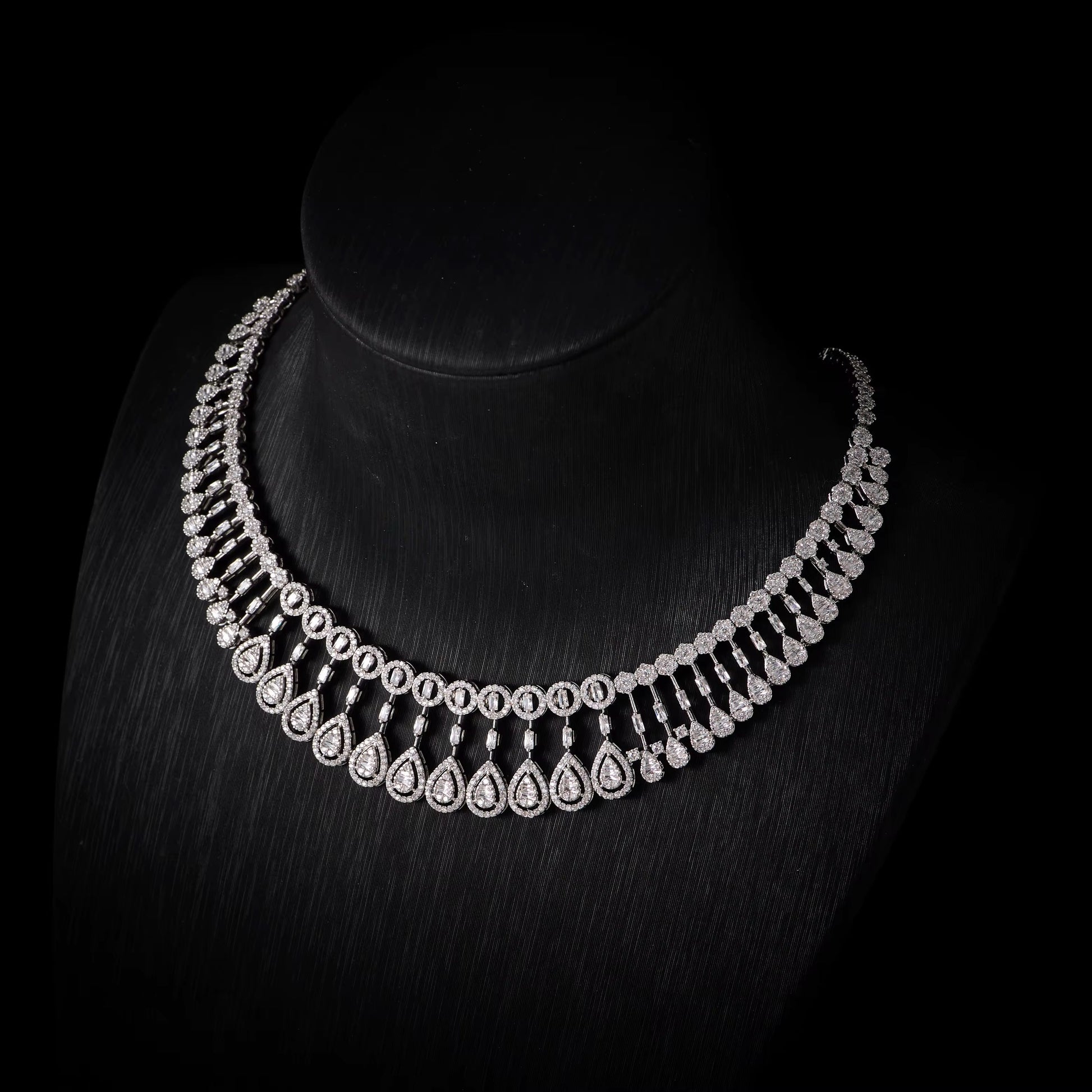 This luxurious white gold-plated Zircon set seamlessly blends sophistication with enchanting sparkle. Meticulously crafted to deliver an opulent look that mirrors the grandeur of genuine diamonds, it features premium materials and ensures absolute comfort for flawless wear.