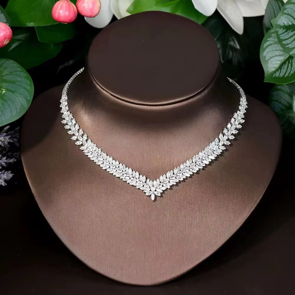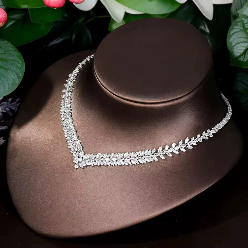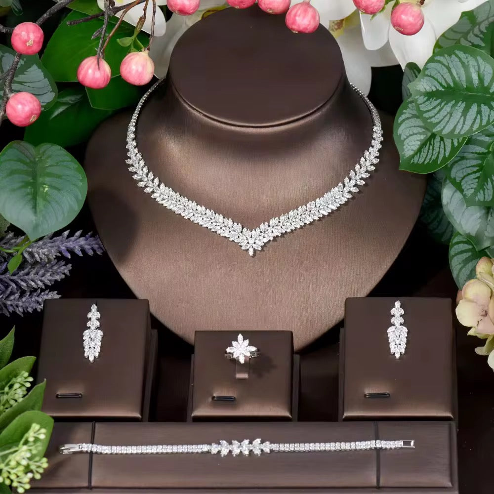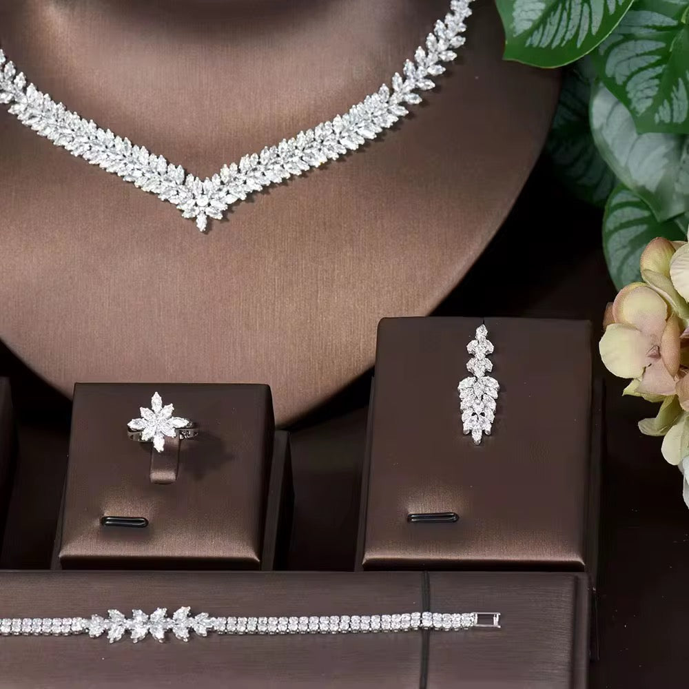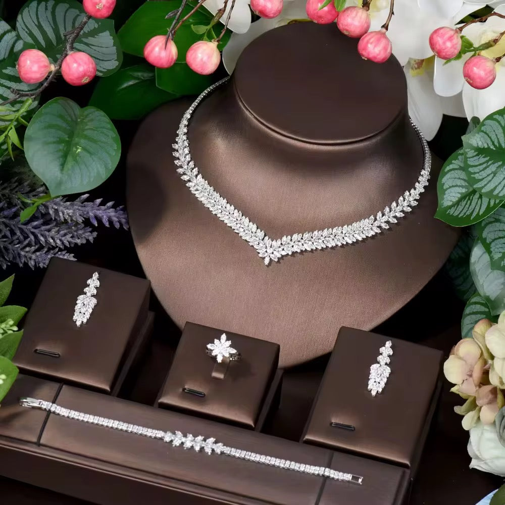 طقم زريكون فاخر مطلي بالذهب الأبيض (آمن للبشرة الحساسة)