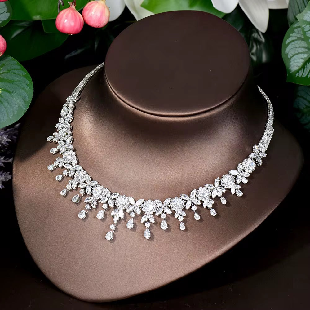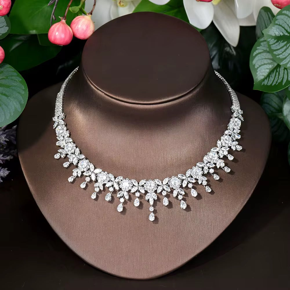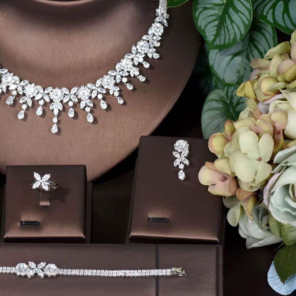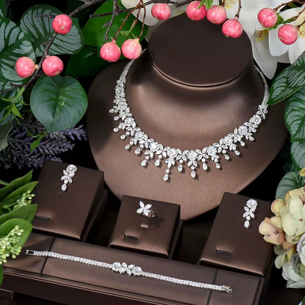 طقم زريكون فاخر مطلي بالذهب الأبيض (آمن للبشرة الحساسة)