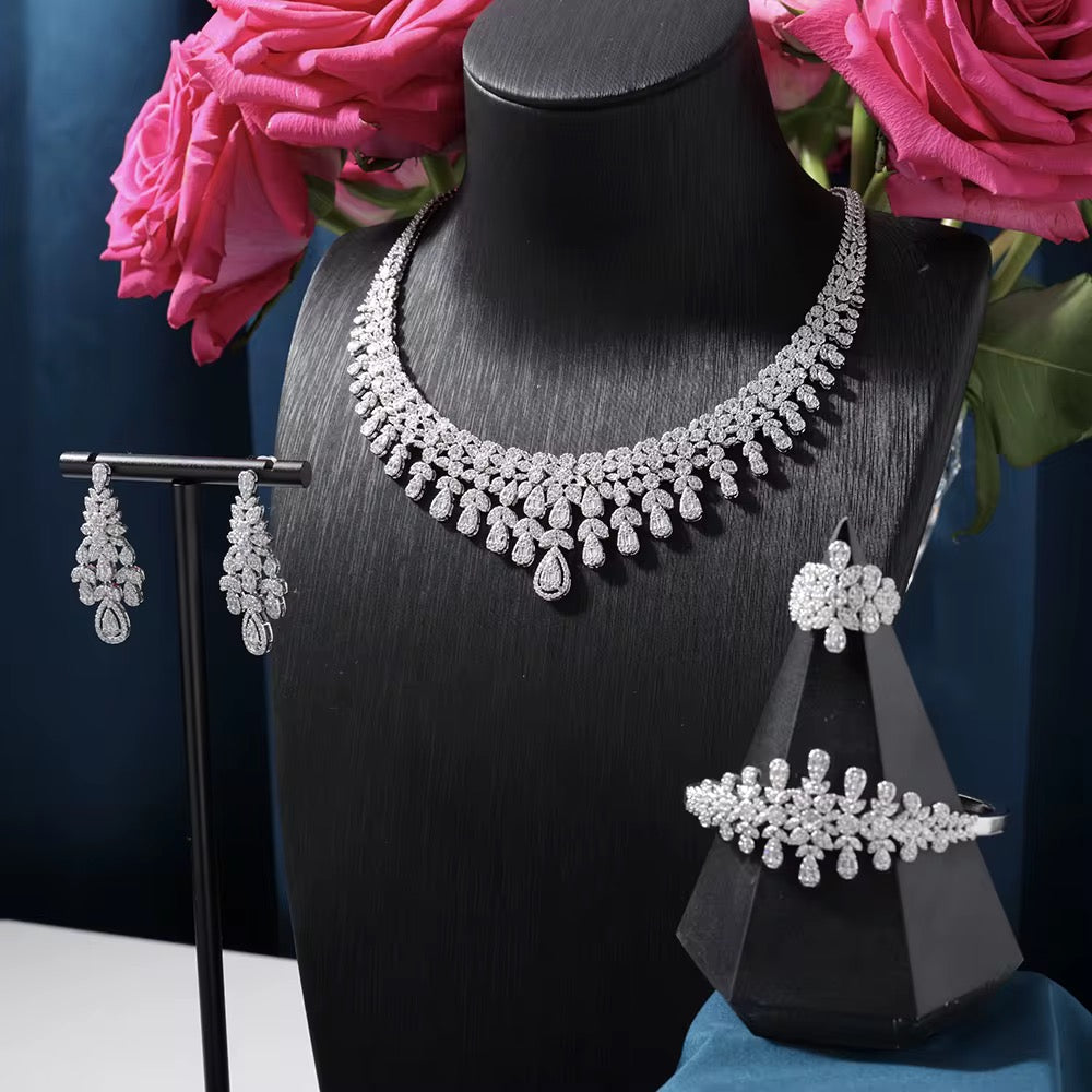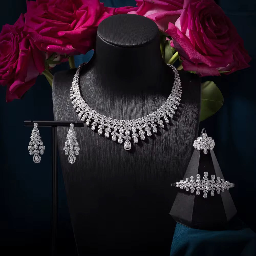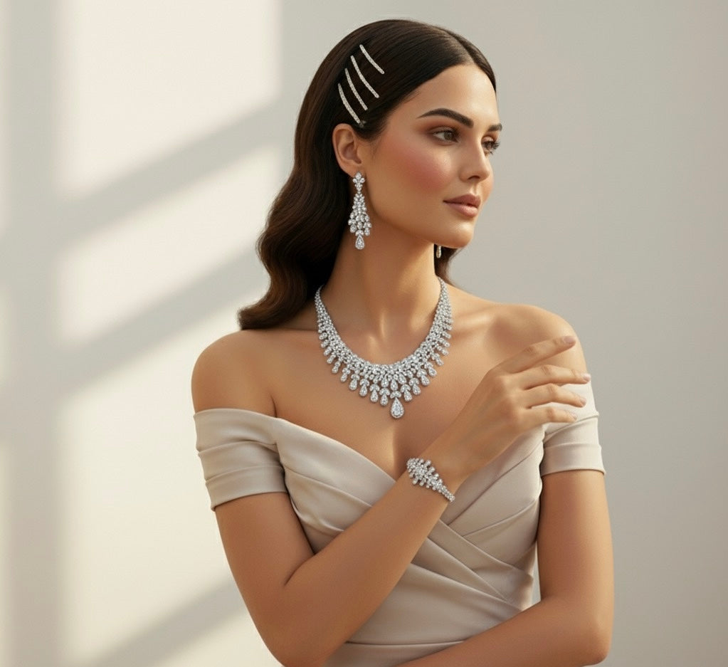 طقم زريكون فاخر مطلي بالذهب الأبيض – فخامة تلامس بشرتك برقة