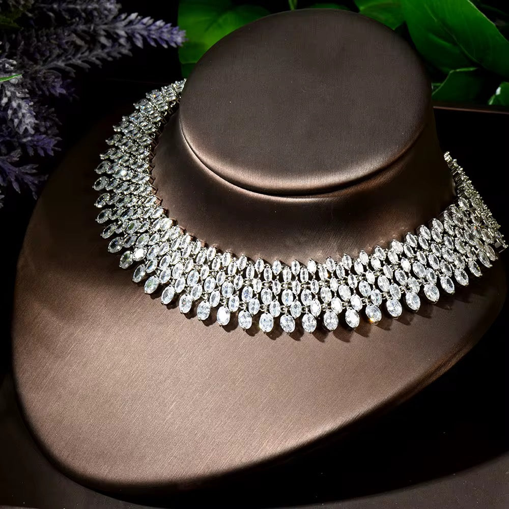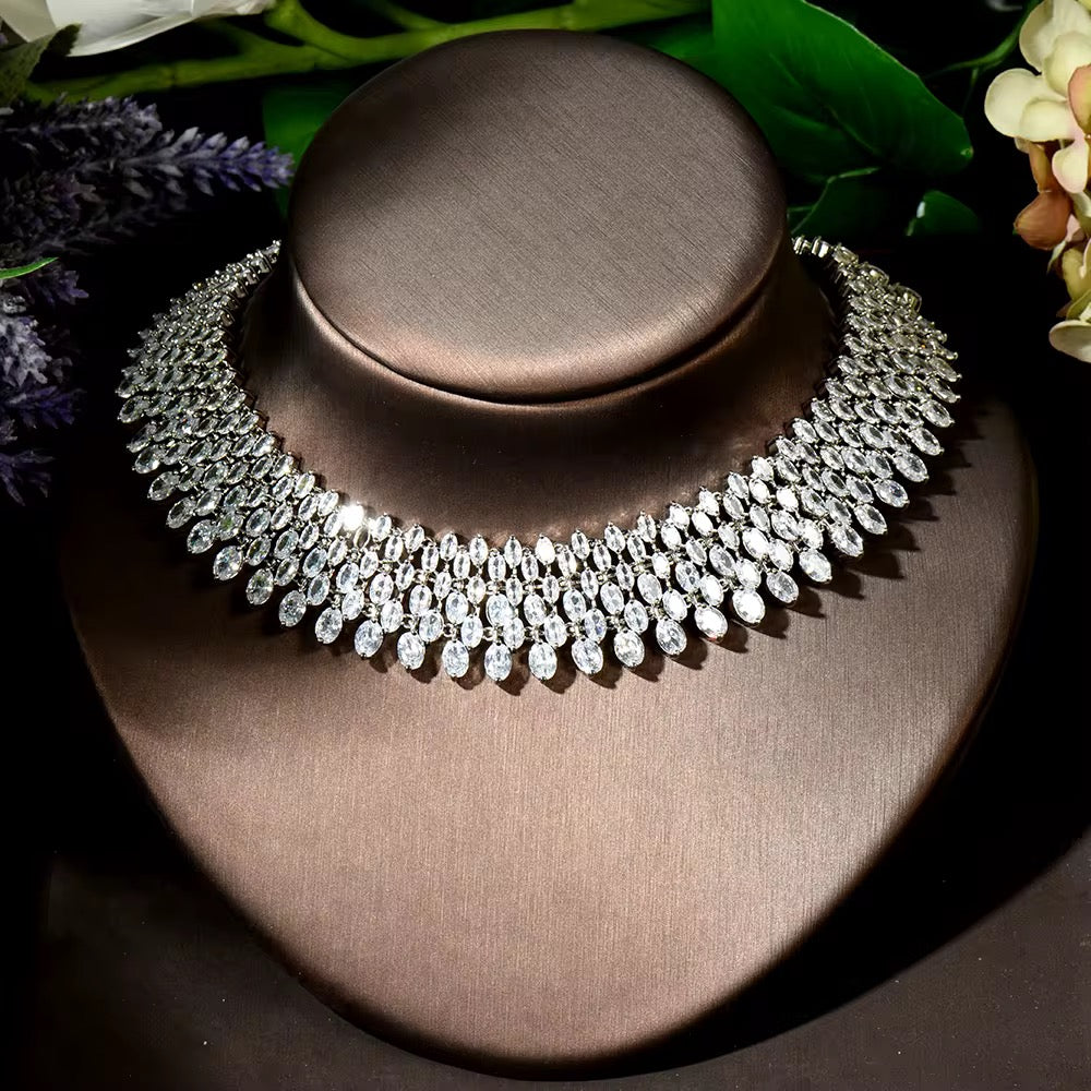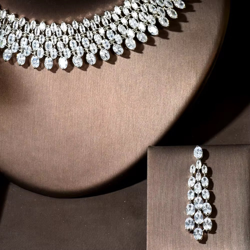 طقم مجوهرات زريكون فاخر مطلي بالذهب الأبيض - آمن للبشرة الحساسة