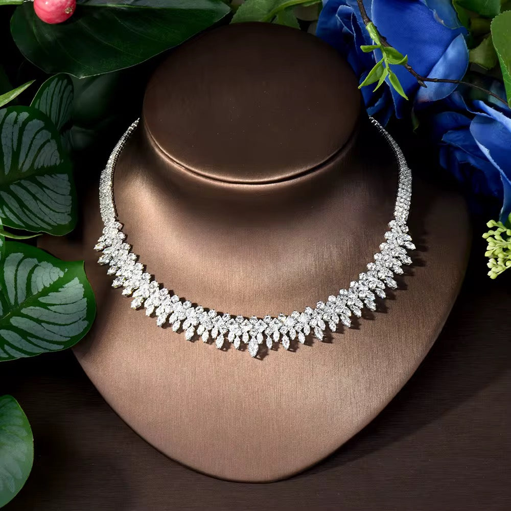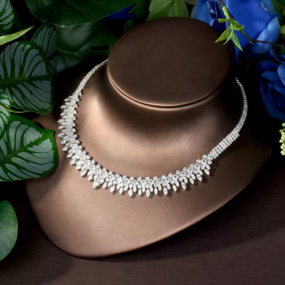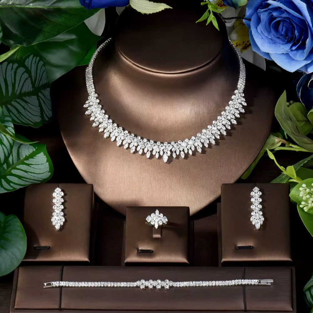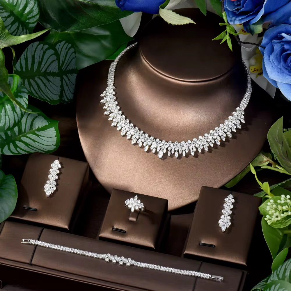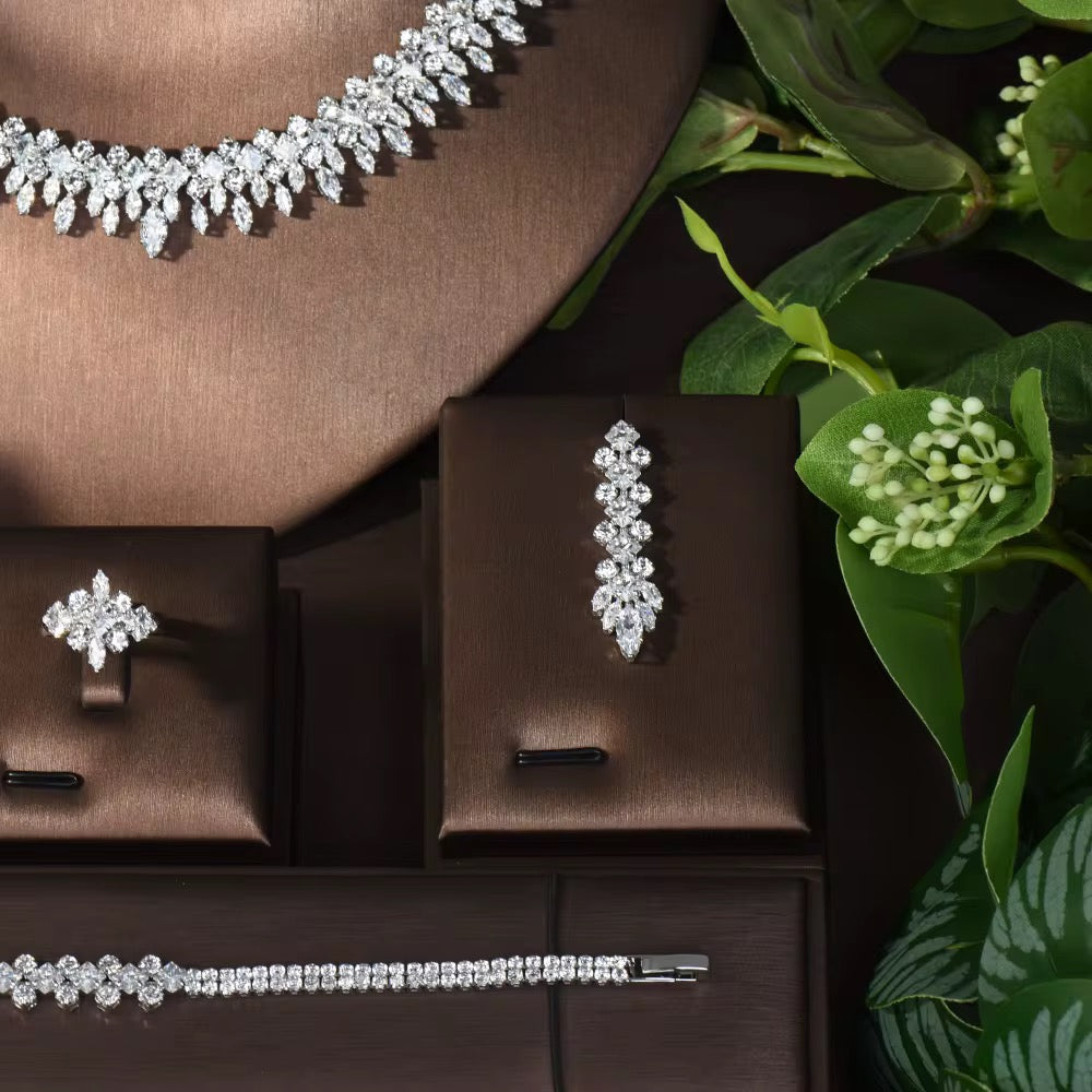 طقم مجوهرات فاخر مطلي بالذهب الأبيض - آمن للبشرة الحساسة