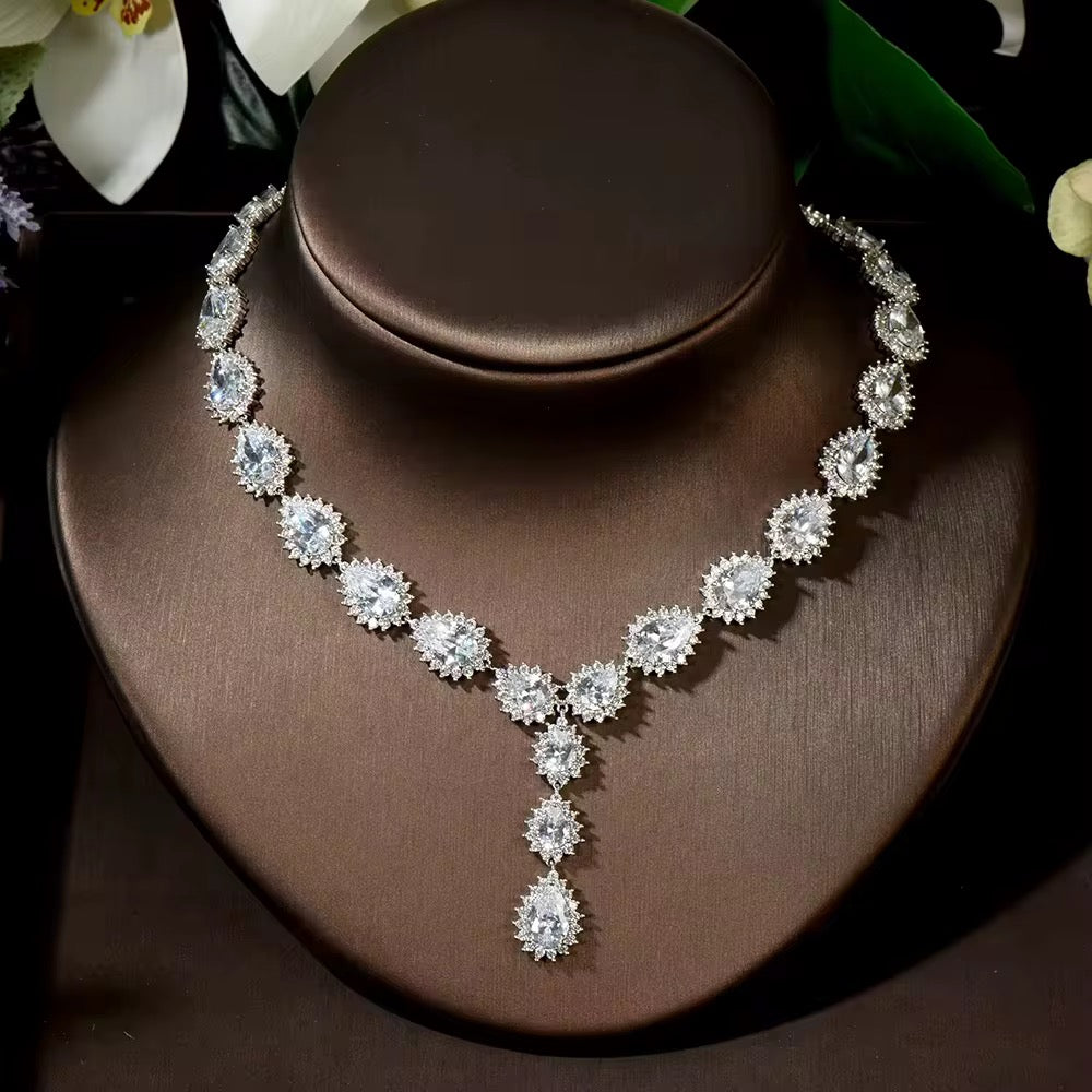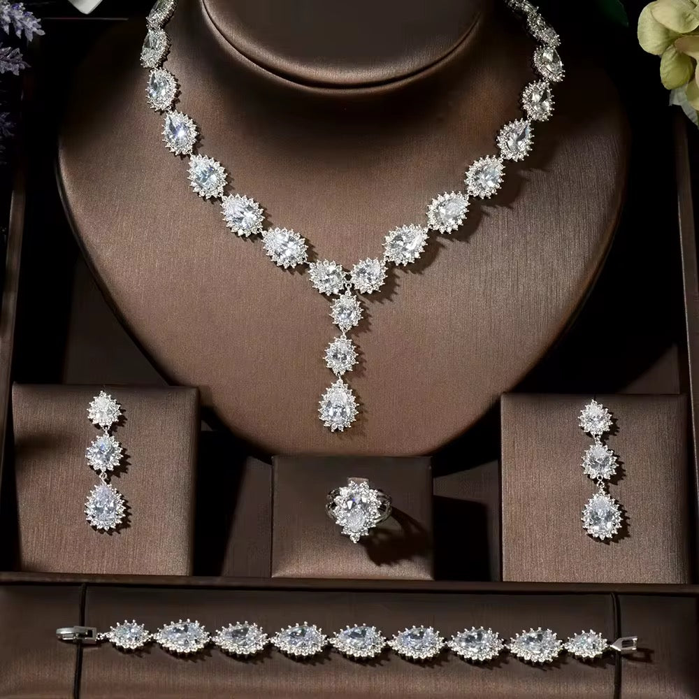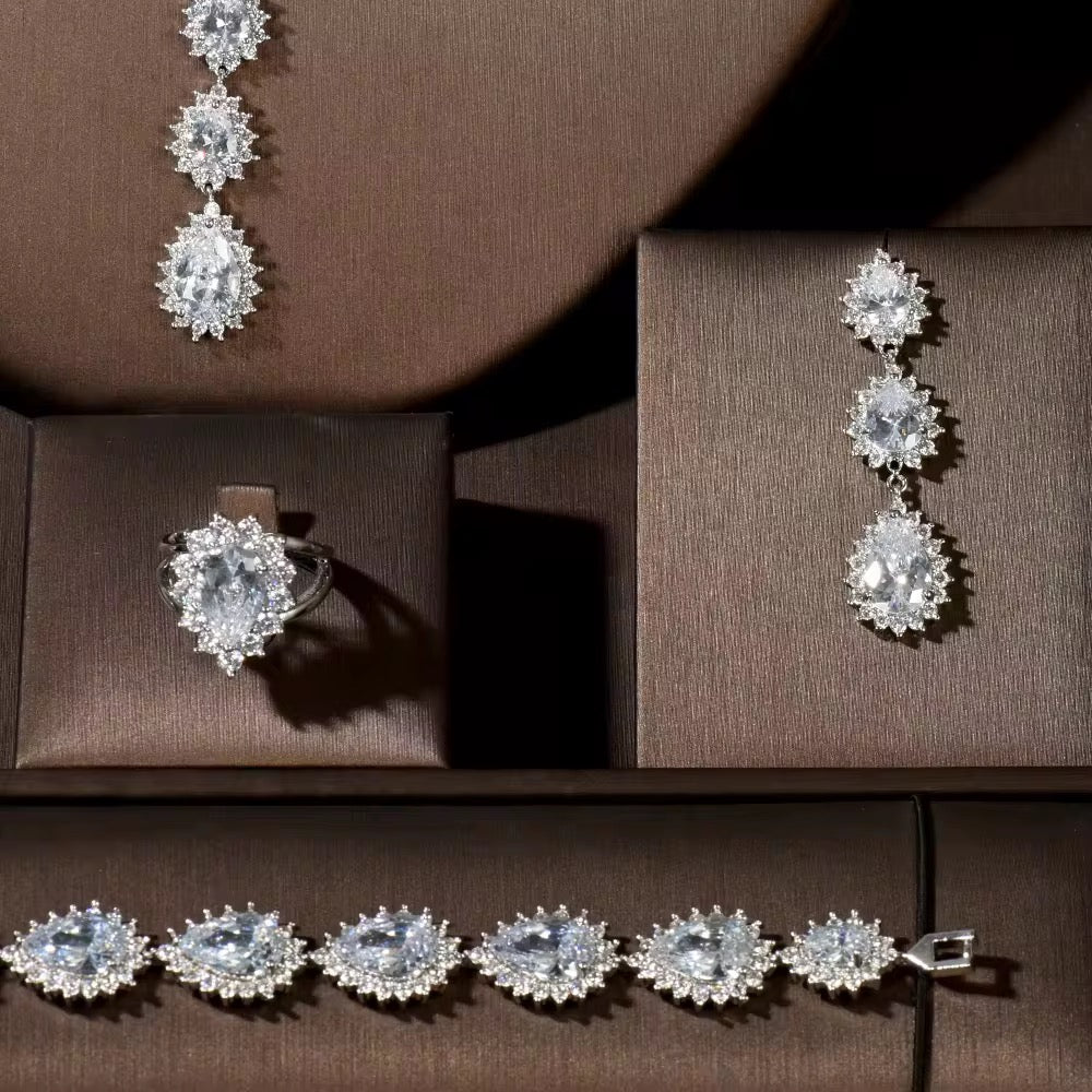مجوهرات زركون فاخرة، دقة ألماس، مطلي بالفضة عالية الجودة وخالي من التحسس.
